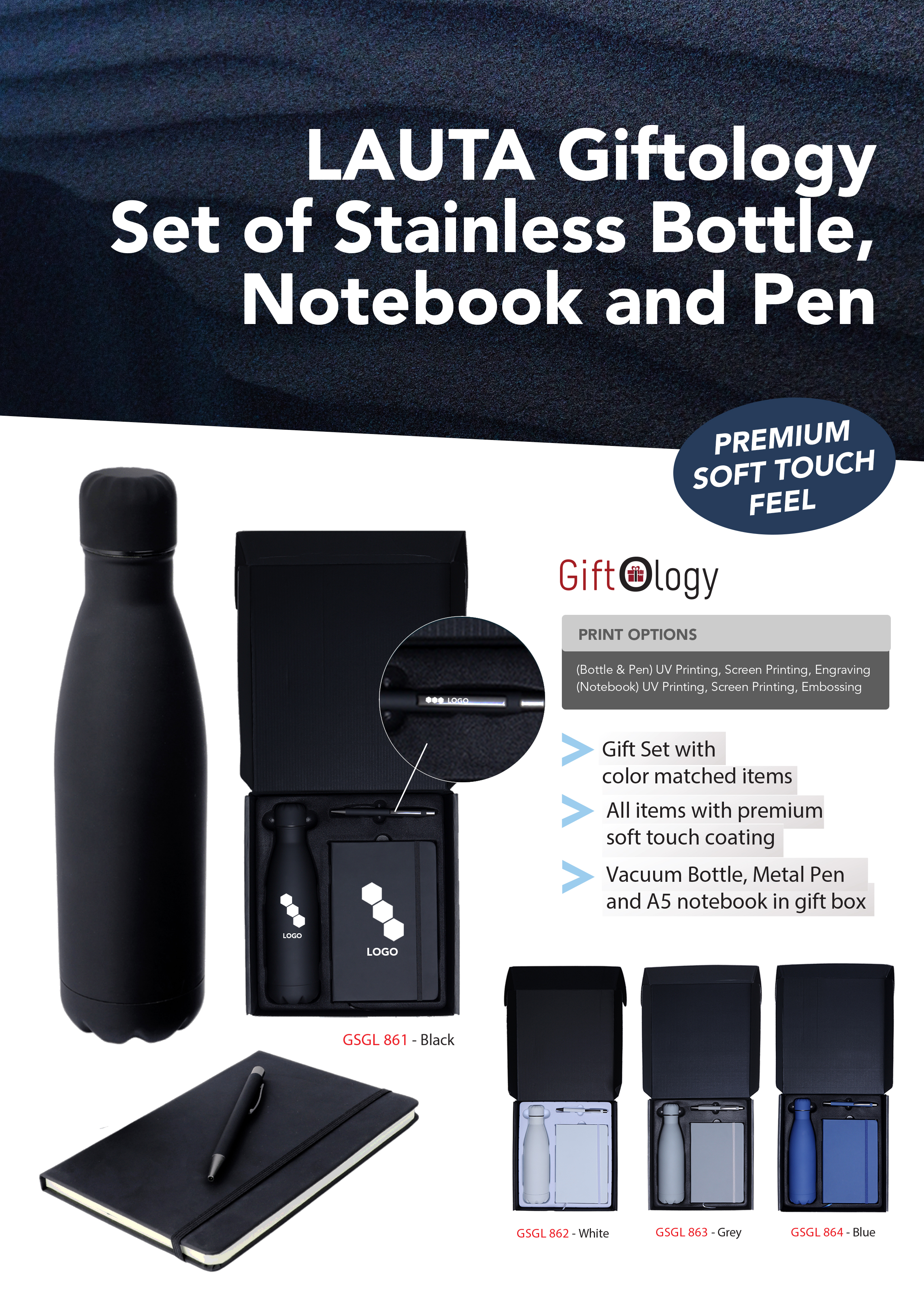 Lauta Giftology Set of Stainless Bottle, Notebook, and Pen