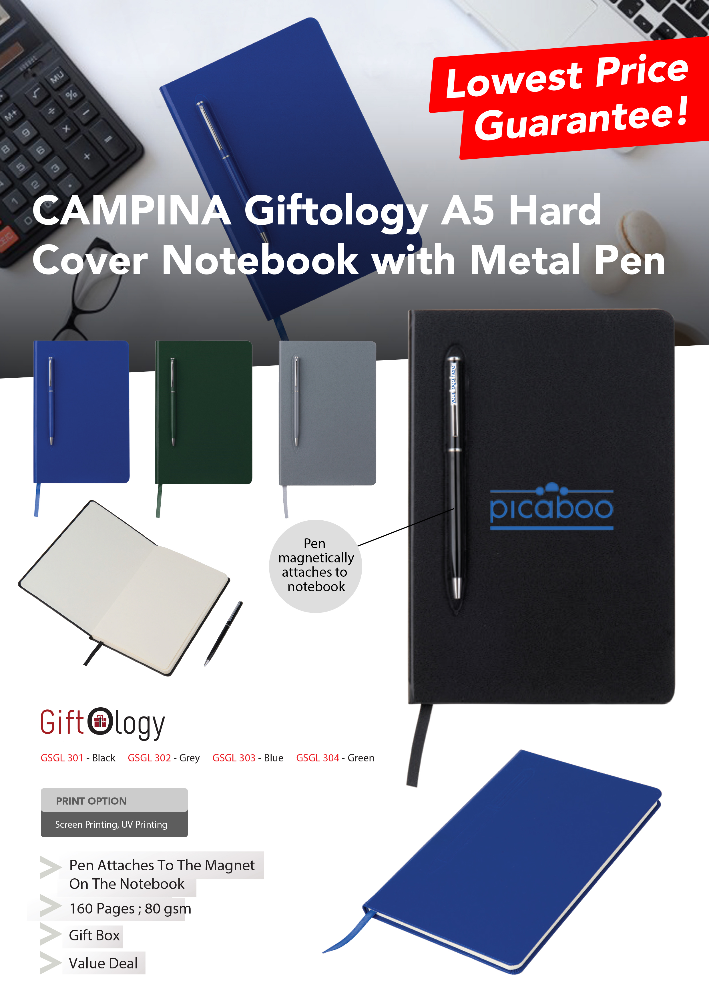 Campina Giftology A5 Hard Cover Notebook with Metal Pen