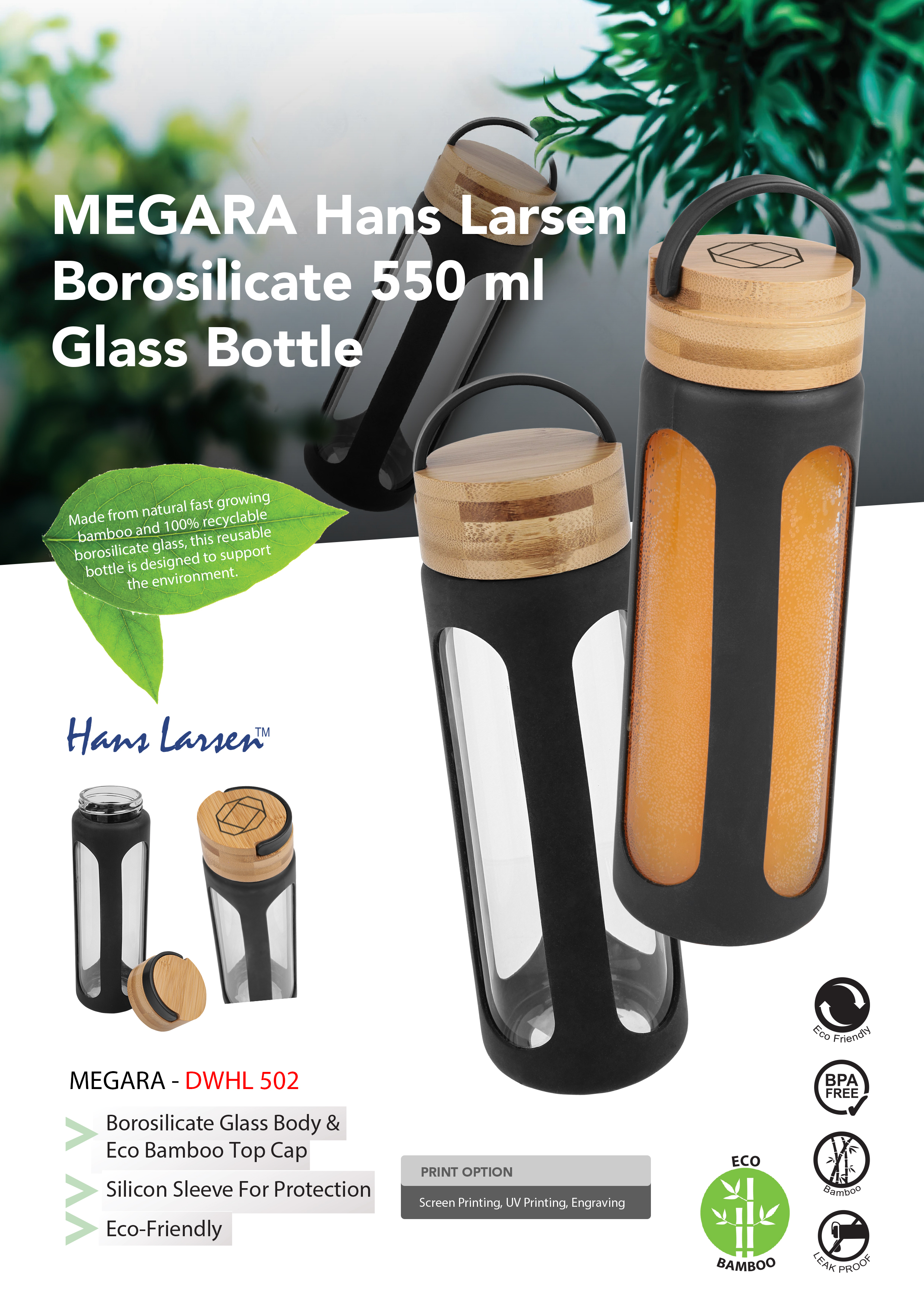 Megara Hans Larsen Borosilicate 550ml Glass Bottle