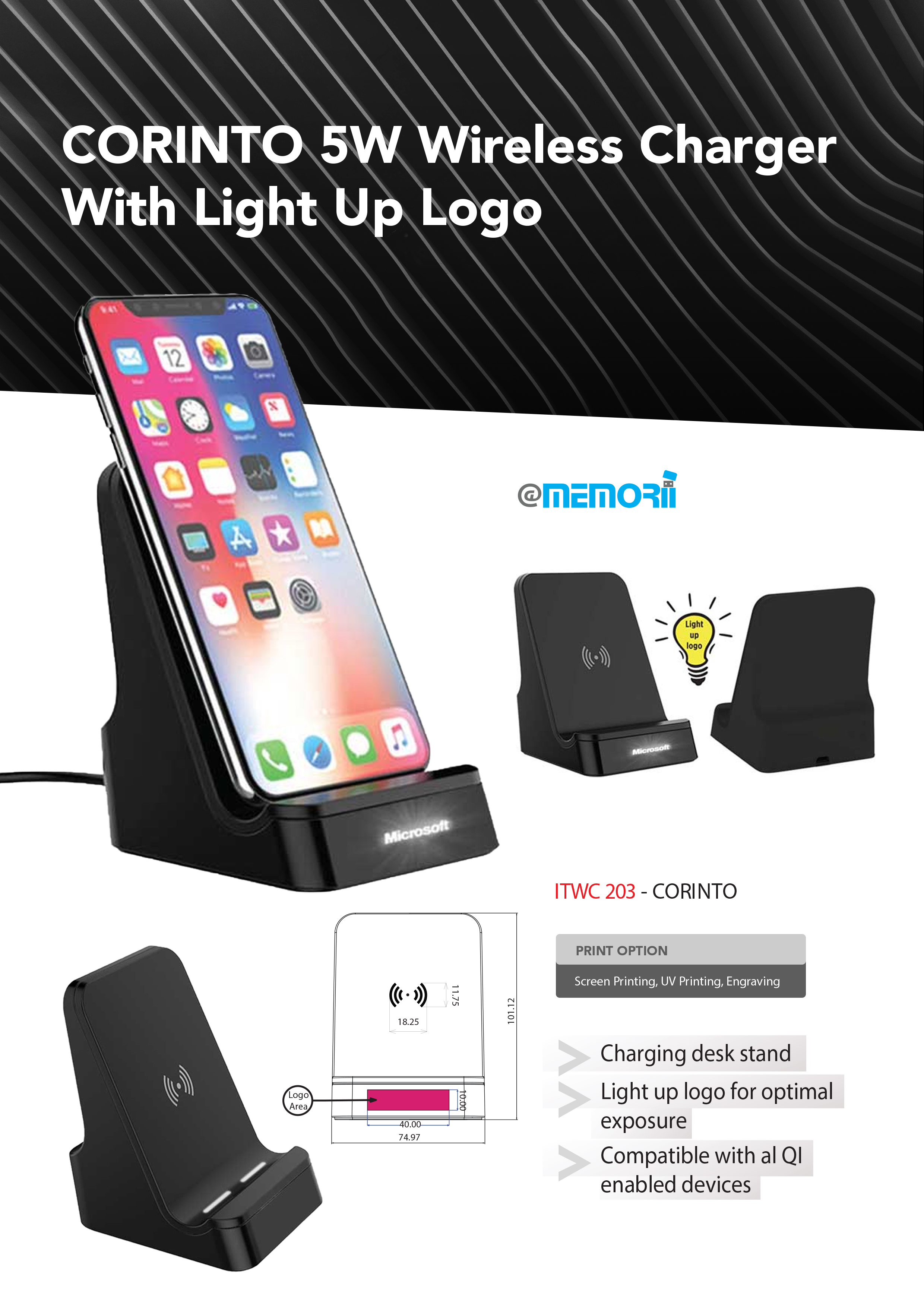 Corinto 5W Wireless Charger with Light Up Logo
