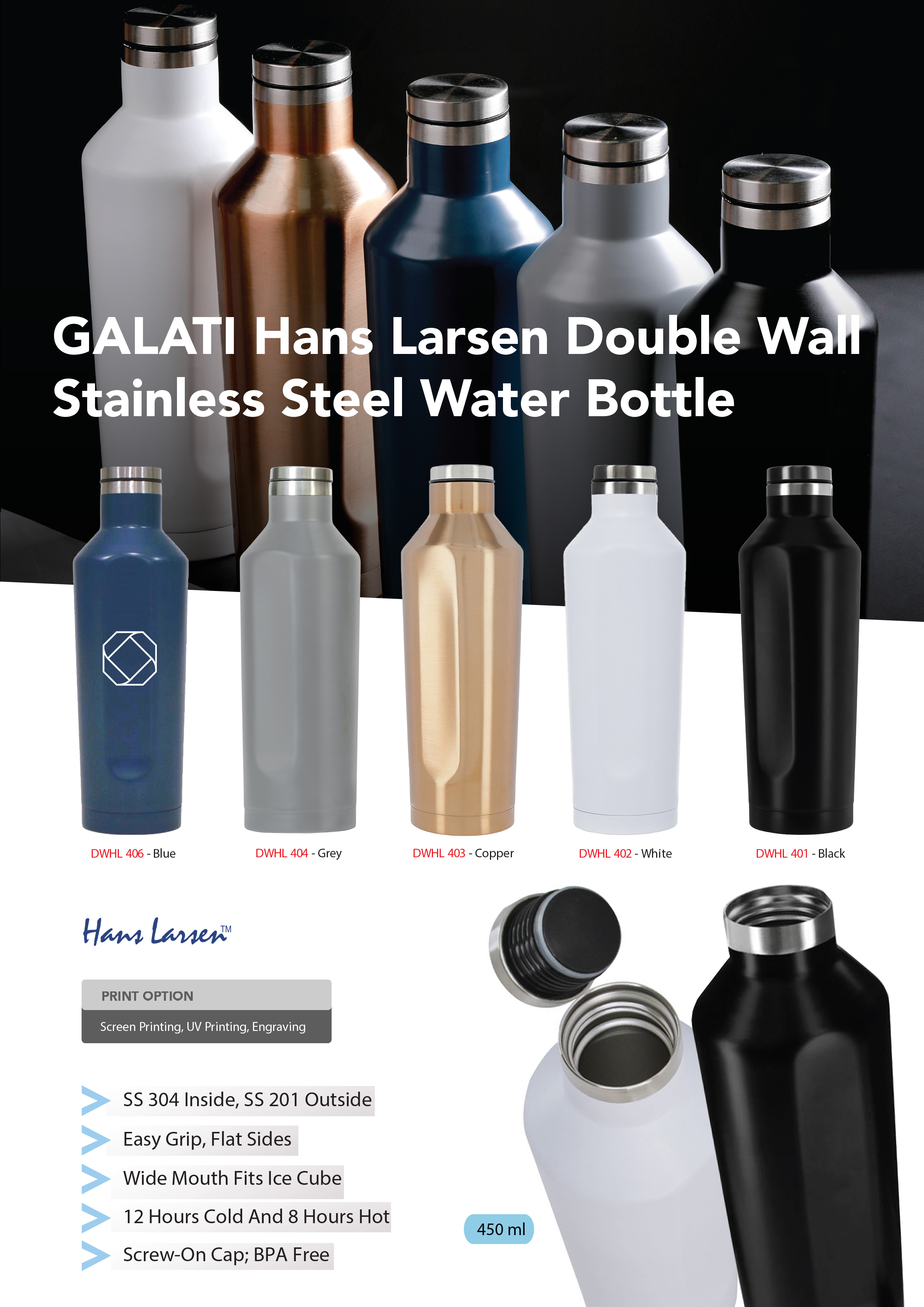 Galati Hans Larsen Double Wall Stainless Steel Water Bottle