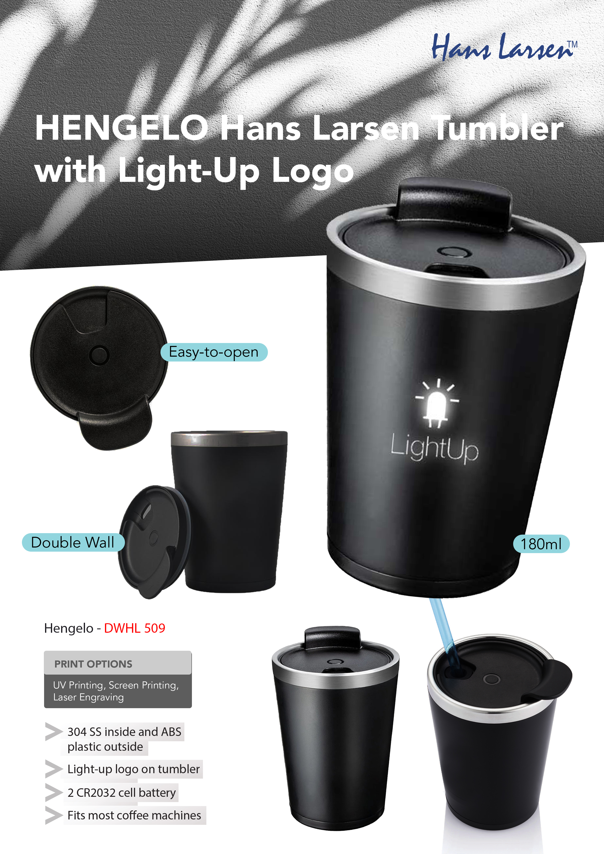 Hengelo Hans Larsen Tumbler with Light-Up Logo